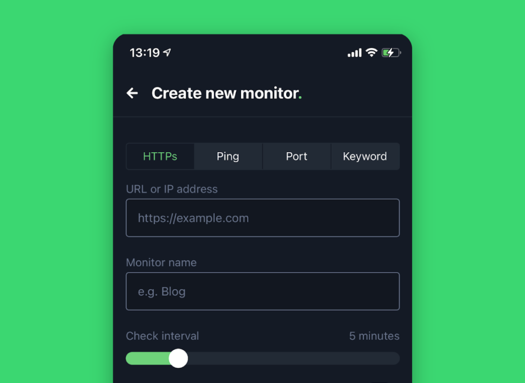前四个监测类型都是由UptimeRobot向指定url发送常规请求,而UptimeRobot的Heartbeat是由本地服务器或设备向UptimeRobot服务器指定的url发送常规请求。